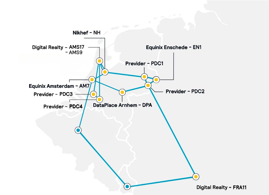Previder bietet schnelle, carrierneutrale Verbindungen zu eigenen Standorten, Cloud-Plattformen, Internet Exchanges und anderen Rechenzentren.